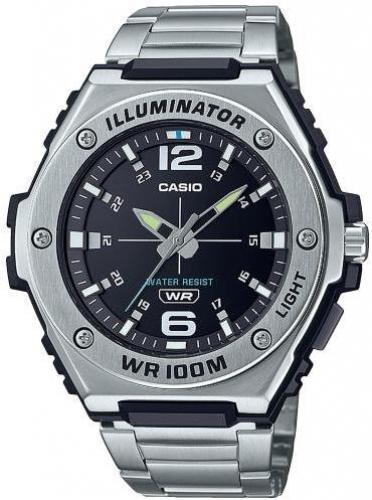 Мужские спортивные часы CASIO MWA-100HD-1AVEF выполнены из пластика в сочетании со стальным браслетом. Модель отличается хорошо читаемым циферблатом с подсветкой, которую можно использовать для подсветки циферблата в условиях ограниченной видимости. Часы подходят мужчинам, которым нужны качественные прочные часы. Кварцевый механизм CASIO 5577 работающий от батарейки, запускает в ход стрелки и отвечает за точность отображения всех функций. Помещен он в полимерный корпус и загерметизирован на 10 бар. Акриловое стекло защищает циферблат от влаги и повреждений.