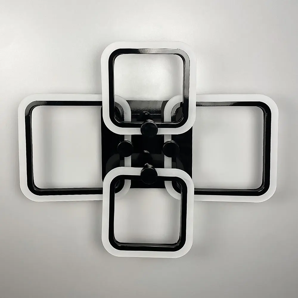 Светодиодная LED люстра на 2+2 рожках квадратной формы в черном металлическом корпусе. Люстра представлена в двух комплектациях на выбор: с RGB подсветкой и без. Тип выключателя: 10 Серия: 2503 BK Цвет основания: Черный Материал плафона: Акрил Размер потолочного основания: 25х4 см Цветовая температура: 3000–4500–6000К Материал основания: Металл Размер монтажной планки: 17 см Тип крепления: Монтажная планка Мощность (Вт): 79