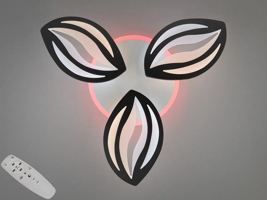 Черная потолочная LED люстра на кухню от "Диаша" мощностью 52 Вт является воплощением современного стиля и элегантности. Ее внешний вид сразу привлекает внимание изящным дизайном: три симметричных лепестка, напоминающие стильный цветочный мотив, образуют гармоничную композицию. Глубокий черный цвет металлической основы придает светодиодной люстре строгость и универсальность, а акриловые рассеиватели создают ощущение легкости благодаря матовой текстуре, которая эффективно рассеивает свет. Сочетание геометрических форм и ярких контрастов делает эту модель идеальным выбором для современного интерьера.
