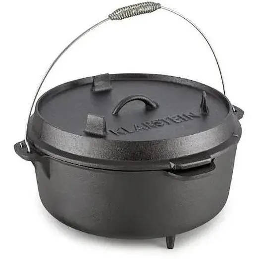 С кастрюлей для барбекю Klarstein Hotrod вы сможете заново открыть для себя оригинальные кулинарные навыки: жарите вы, запекаете или готовите, чугунная жаровня доставит вам удовольствие. Поместив его прямо на открытый огонь, вы можете сразу приступить к делу, будь то на гриле, в костре или у костра. Благодаря плотно закрывающейся крышке с очень высокими полями тлеющего угля можно безопасно складывать сверху для обогрева. Чугун обеспечивает оптимальное распределение тепла даже если огонь горит неравномерно. Вы даже можете испечь торт или хлеб, не заставляя кастрюлю потеть. Особенно практично: крышку можно просто перевернуть и затем использовать в качестве кастрюли диаметром 33 см на штативе.