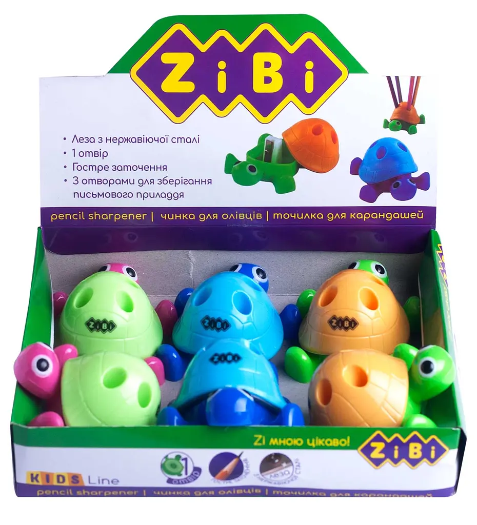 Точилка Черепашка, с контейнером, 1 отверстие, 6 шт. в дисплее - Точилка Черепашка (6 шт. в дисплее) - точилка для карандашей в виде черепашки для детей от 6 лет. Изготовлена из прочного пластика, с контейнером для стружки, 1 отверстие. Способствует удобству и поощряет к обучению.