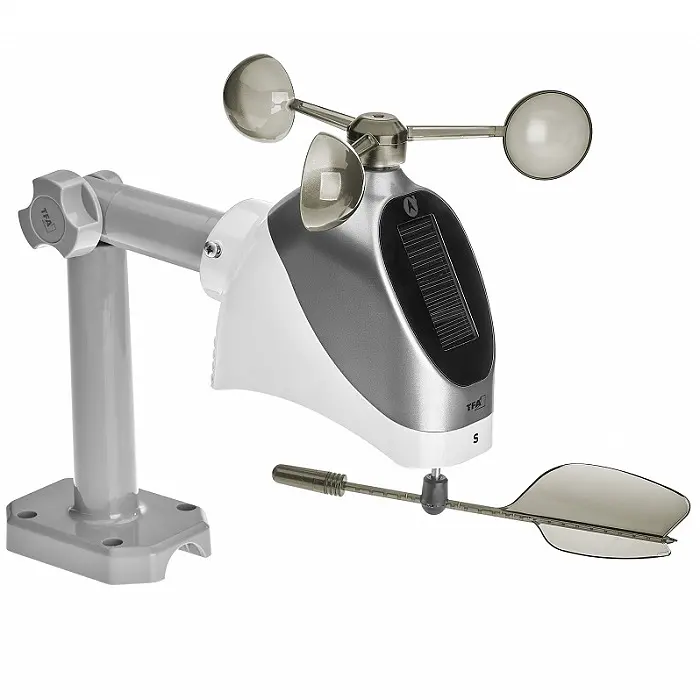 Особенности: Для беспроводной передачи направления ветра, скорости ветра, температуры и влажности. Частота передачи 868 МГц. Дальность передачи до 100 м (открытое пространство). Совместим с системой VIEW. Описание: Беспроводной комбинированный датчик для использования с метеостанциями TFA VIEW WIFI и приложением 35.8000.01 | 35.8001.01 | 35.8002.01 | 35.8003.01. Внешний датчик предназначен для определения направления и скорости ветра, а также температуры и влажности. Значения передаются беспроводным способом на базовую станцию. Датчик должен размещаться высоко над землей вертикально и не иметь препятствий, таких как здания или деревья. Комплектация: комбинированный датчик, инструкция по эксплуатации. Размеры (ВхШхГ) 216 x 222 x 216 мм. Питание: батарейки 3 x 1,5 В АА (не входят в комплект), солнечная панель. Гарантия 12 месяцев официальной гарантии от производителя. О компании TFA Семейная компания TFA Dostmann GmbH & Co.KG производит метеорологические и измерительные приборы на собственном производственном предприятии в Райгольцхайме (около Вертгайма, Германия) с 1964 года или производит их по всему миру. Термометры, термогигрометры, барометры и метеостанции теперь дополняются настенными часами, будильниками, таймерами, весами и многими другими полезными товарами для повседневного использования. Более 1000 вдохновляющих измерительных приборов — от функциональных до ориентированных на дизайн, от вневременных до современных. TFA Dostmann является одной из ведущих компаний в этой отрасли в Европе. Откройте для себя высококачественные инновационные продукты для всего, что касается погоды, климата в помещении и времени.