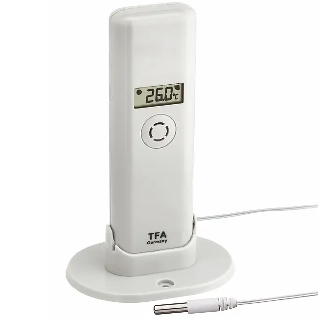 Производитель: TFA Dostmann GmbH & Co.KG, ГерманияОсобенности:Проверяйте данные в любое время и в любом месте через смартфонМониторинг температуры и влажности (в помещении или на улице) и одновременный мониторинг температуры морозильной камеры, холодильника, аквариума, бассейна или пруда с помощью кабельного датчикаРегулируемые пороги срабатывания сигнализации, push-уведомления в случае срабатывания сигнализацииПамять до 90 днейЧастота передачи 868 МГцТолько для работы со шлюзом WeatherHub (продается отдельно)Теперь вы можете использовать свой смартфон для мобильного мониторинга климата и дома! С помощью системы WeatherHub SmartHome вы можете легко отслеживать погоду, температуру и другую информацию в вашем доме и саду. Установите датчик именно там, где вы хотите измерять климатические данные. Определенные значения передаются по беспроводной сети на модуль шлюза, а затем на сервер. Вы можете получать информацию на свой смартфон в любое время и оставаться в курсе, где бы вы ни находились. Системой WeatherHub SmartHome можно быстро и легко управлять с помощью бесплатного приложения. Этот датчик WeatherHub обеспечивает высокую надежность измерения температуры и влажности в помещении или на улице. Кроме того, встроенный водонепроницаемый кабельный датчик позволяет контролировать температуру в других местах, например, в холодильнике или морозильной камере, аквариуме, бассейне или пруду.ВАЖНО! Для работы с этим датчиком вам понадобится шлюз WEATHERHUB. Шлюз можно приобрести отдельно в качестве стартового набора в сочетании с одним или несколькими передатчиками. Затем этот набор может быть дополнен до 50 дополнительных передатчиков и подключаемых устройств.