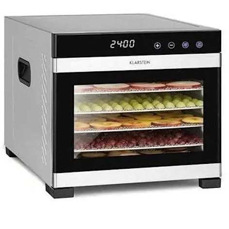 Высокопроизводительный дегидратор Klarstein Flavour Dry сушит фрукты, овощи, мясо и другие продукты с рекордной скоростью, создавая вкусные закуски и ингредиенты, которые долго сохраняются. 360° циркуляция воздуха обеспечивает распределение тепла. Корпус из нержавеющей стали с легко читаемым сенсорным жидкокристаллическим дисплеем является жемчужиной каждой кухни благодаря своему элегантному дизайну.