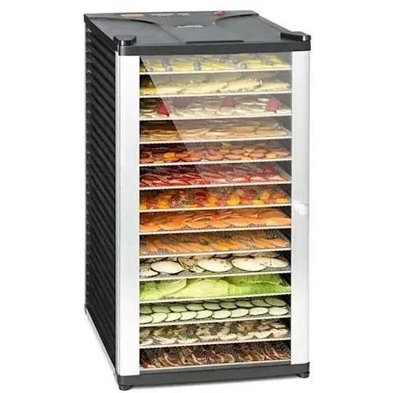 Здоровые, вкусные закуски в больших количествах: с помощью дегидратора Klarstein Fruit Jerky 14 вы можете быстро и легко высушить продукты на 14 уровнях. Фрукты, овощи, мясо или травы - благодаря мощности 1000 Вт и температуре от 30 до 70 °C Сушилка с циркуляционным воздухом мягко удаляет воду из пищи и хранит ее - без каких-либо добавок. Благодаря своим размерам и производительности Fruit Jerky 14.