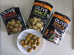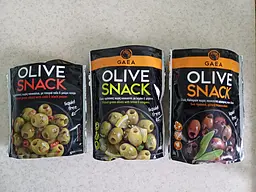 Зручний формат - три невеликі пакування по 65 г з різними смаками. Легко взяти з собою в дорогу або спробувати для різноманіття. Пакування відкривається просто. Мінус у тому, що оливки без розсолу, тому після відкриття їх краще з’їсти швидко. На смак - цілком непогані, але для мене найсмачніші все ж зелені «гіганти».