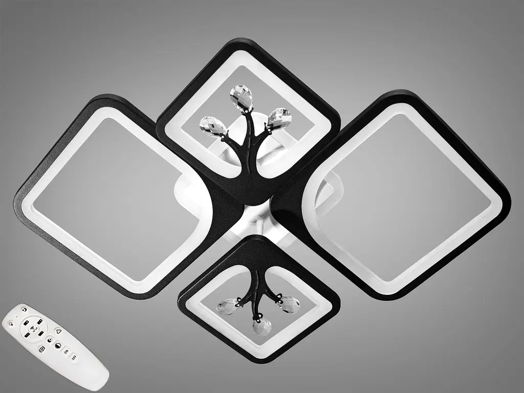 Представленная новинка "Диаша", припотолочная LED люстра в комнату, отличается современным дизайном с ярко выраженными геометрическими формами. Металлический каркас в форме четырех больших квадратов с округленными углами пересекается в центре, создавая динамичную композицию. Цвет каркаса варьируется и может быть выполнен в белом, черном, коричневом или сером цветах. При приобретении светодиодных люстр оптом от украинского производителя "Диаша", вы обеспечите не только освещение в комнате, но и придадите интерьеру особую изысканность. Известная своими инновациями в осветительном дизайне, "Диаша" является гарантом качества и долговечности. Каждый квадрат обрамляет светодиодный источник света, скрытый акриловыми рассеивателями, обеспечивающими мягкий и равномерный свет без резких теней или бликов, что делает люстру идеальной для детских комнат, а также помещений, где нужно создать спокойную атмосферу. Управление светом осуществляется с помощью пульта с электронным димером, который позволяет регулировать яркость и цветовую температуру света, от холодных до теплых тонов, а также включать режим «ночник», который идеально подходит для создания приглушенного света ночью. Люстра от "Диаша" также имеет LED подсветку металлической основы, которая может менять цвет, добавляя интерьеру дополнительное измерение. Энергоэффективность и долговечность светодиодов обеспечивают низкое энергопотребление и длительный срок службы, а малая высота от потолка делает эту люстру отличным вариантом для помещений с ограниченным пространством. Эта светодиодная люстра идеально подойдет для широкого спектра стилей интерьера, от минималистичных и современных до эклектичных и даже индустриальных пространств. Она станет центральным элементом в гостиных, спальнях, а также может использоваться на кухнях или в детских комнатах, где ее безопасность и мягкий свет станут неоспоримыми преимуществами. Люстра лофт в спальню будет воплощением роскоши, сочетающейся с простотой, или станет эпицентром люстры в гостиную, где каждый вечер можно проводить под уютным светом. Она реализует инновации на украинском рынке, демонстрируя, что «Диаша» не только следует традициям высокого качества материалов, но и является новатором в сфере осветительного дизайна.