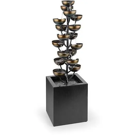 Нежное брызгание декоративного фонтана Blumfeldt Joshua Tree делает отдых еще приятнее. Освежающая вода каскадом струится из верхушки дерева через 17 чаш, услаждая глаз и слух. Фонтан Joshua Tree не только чрезвычайно прочен и устойчив к погодным условиям, изготовлен из металла, но имеет обманчиво реалистичное латунное покрытие, которое не тускнеет и идеально сочетается с разнообразными интерьерами. Мощный насос мощностью 7 Вт поддерживает непрерывный поток воды, обеспечивая, чтобы нежный брызг создавал великолепный успокаивающий оазис вокруг фонтана.Благодаря чрезвычайно длинному 10-метровому кабелю фонтан Blumfeldt Joshua Tree предлагает исключительную гибкость в размещении. Все компоненты устойчивы к погодным условиям и могут оставаться на улице даже в непогоду.