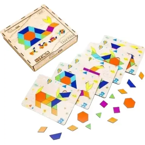 Деревянная головоломка для детей PuzzleOk Танграм 5 рисунков в упаковке для детей от 4 лет из высококачественного экологического материала будет способствовать развитию воображения, мышления, научит складывать изображения по образцу, развивать мелкую моторику вашего ребенка и пространственное мышление.