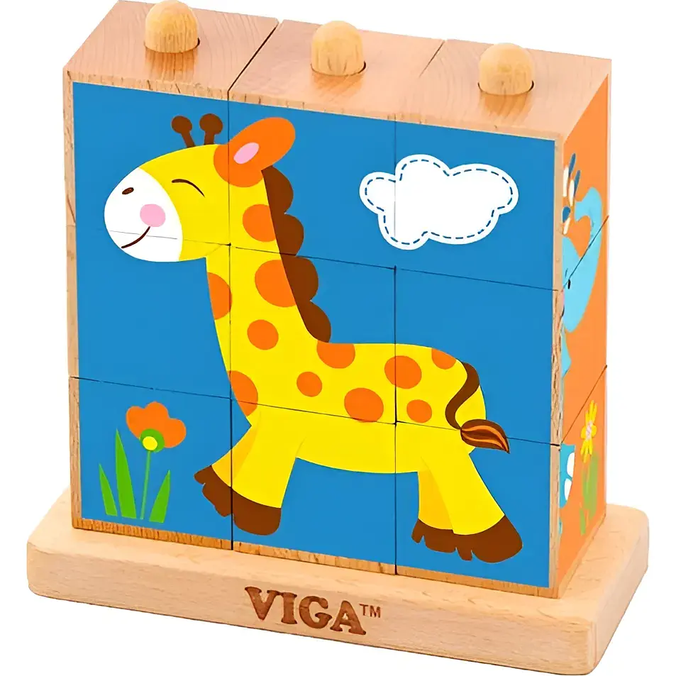 Собирая с кубиков картинку зверюшки, ребенок учится фокусировать внимание, тренирует зрительно-моторную координацию, движения рук. Соотнося части и целое, малыш развивает память и логическое мышление. Кубики-пирамидка Viga Toys Зверята подходят для занятий дома и в группе, в частности по системе Монтессори. Рекомендованы для детских садов и центров развития.