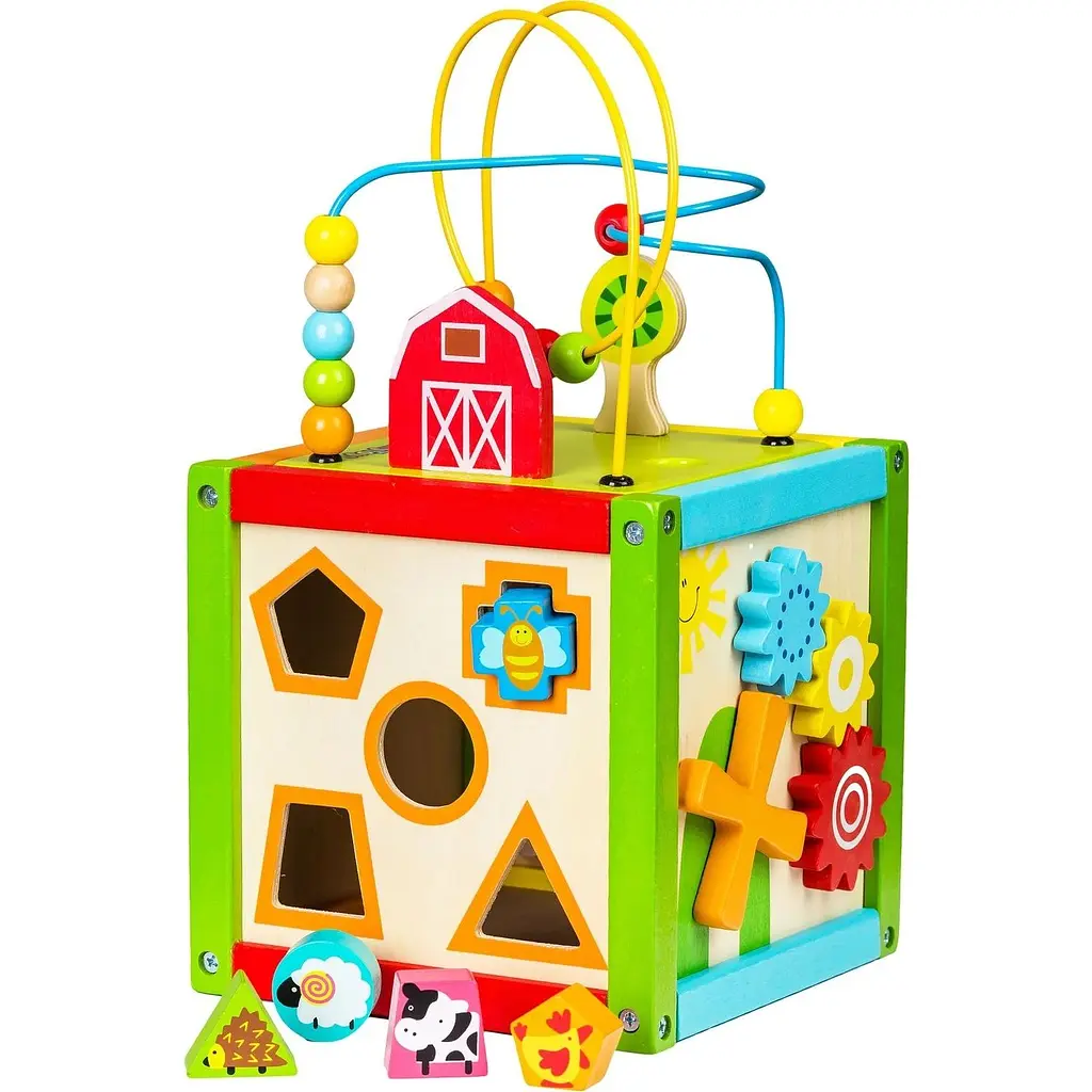 Этот многофункциональный бизикуб предлагает ребенку разнообразные активности, способствующие всестороннему развитию. Он позволит малышу развиваться на многих уровнях, стимулируя развитие в плане распознавания формы, ручных навыков и зрительно-моторной координации: