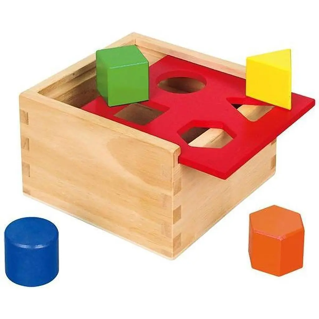 Сортер Геометрические фигуры от Viga Toys - базовая развивающая игрушка для знакомства ребенка с формами и цветами. Выделяется минималистическим дизайном и практичностью в использовании. Состоит из деревянного ящика с выдвижной крышкой с 4 отверстиями разной формы и 4 видов геометрических тел.