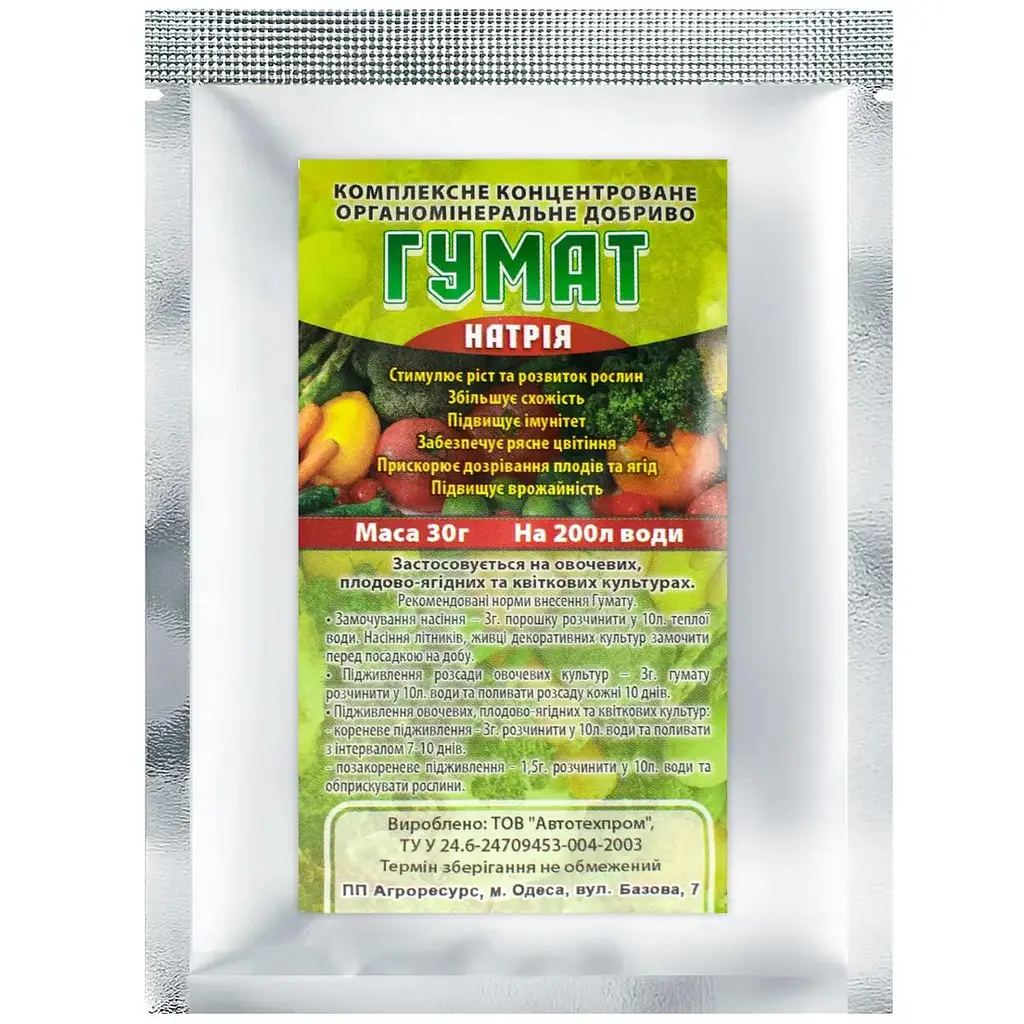 Органо-минеральное удобрение на основе гуматов натрия для стимуляции роста растений и улучшения плодородия почвы. Улучшает обменные процессы в корневой зоне, способствует активному развитию корневой системы, повышает устойчивость к стрессам и помогает лучшему усвоению питательных элементов. Удобная фасовка 30 г – для приготовления рабочего раствора под полив или опрыскивание.