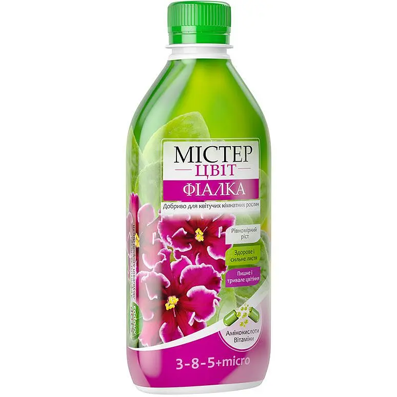 Містер Цвіт Сенполия - минеральное удобрение расширенного спектра действия для фиалок (сенполий) и других видов геснериевых. Также можно подпитывать большинство цветущих комнатных растений для улучшения бутонизации и пышного цветения (кроме азалий, рододендронов, камелий - им нужна более кислая среда).
