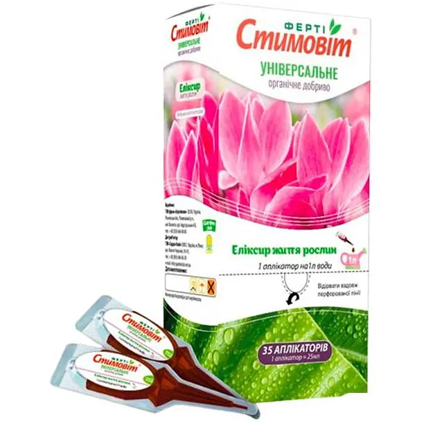 Удобрение в аппликаторе Универсальное на 1 л воды - это проверенное временем высокоэффективное удобрение, изготовленное из экстракта биогумуса. Обогащен макро- и микроэлементами и комплексом биологически активных веществ природного происхождения. Благодаря особому составу Стимовит полностью обеспечивает потребности культур в органических и минеральных питательных веществах. При применении удобрения Стимовит Ферти Универсальное в аппликаторах в почву вместе с гумусовыми веществами попадают витамины, ферменты, другие продукты жизнедеятельности микроорганизмов и калифорнийского дождевого червя, способствующие улучшению плодородия почвы.
