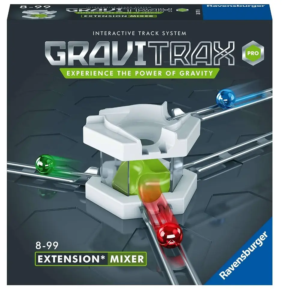 Элемент GraviTrax PRO Mixer превращает классическую трассу в настоящий эксперимент, где каждый запуск — новое приключение.