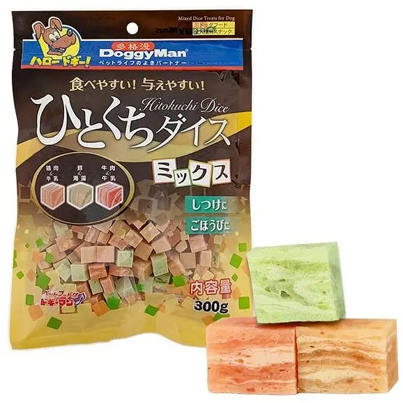 Ищете идеальное лакомство для дрессировки и поощрения собак – оно перед вами! Кубики DoggyMan Mixed Dice Treats уже идеально нарезаны на 1 укус, имеют мягкую структуру и не требуют длительного пережевывания. Для собак с проблемами зубов, щенков и пожилых питомцев, а также собак, которые глотают корм не прожевывая это свойство является неоспоримым преимуществом.