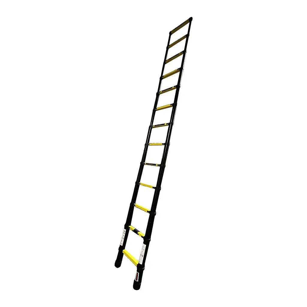 Лестница GTM KME1038Y/881038 - приставная телескопическая алюминиевая стремянка на 13 ступеней для бытового и профессионального использования. Эта модель не имеет каких-либо дополнительных опор, поэтому прижимается к стене или другой вертикальной поверхности под углом 65-75° относительно пола.