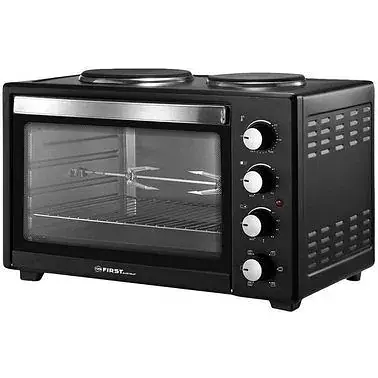 Если у Вас небольшая кухня или Вам нужна надежная функциональная духовка в дачный домик, то мини-печь First FA-5045-4 это то, что нужно! Эта помощница объемом 45л сможет не только пожарить стейк, приготовить мясо или рыбу, но и испечь нежнейшие булочки и печенье. Мини-печка First FA-5045-4 поможет также, если Вы захотите разогреть уже готовую порцию. Мини-печь имеет механическое управление очень простое в освоении. Характеристики: Объем, л: 45 Диапазон температуры: 100-230 С Количество режимов приготовления: 5 Вертел Гриль Конвекция Внутренняя подсветка Звуковой сигнал С конфорками Внутреннее покрытие: Нержавеющая сталь Напряжение: 230 В Комплектация: Электрическая печь; Противень; Решетки-гриль; Щипцы; Поддон для крошек; Инструкция Цвет корпуса: Черный Тип управления: Механическое Мощность: 3200 Вт Материал корпуса: Металл Режим одновременной или раздельной работы печи и двухконфорочной плитки Количество стекла в дверце: 1 Программы: Верхний + Нижний нагрев с конвекцией; Верхний нагрев с конвекцией; Верхний + нижний нагрев; Верхний нагрев + Вертел; Верхний + Нижний нагрев + Вертел с конвекцией Вес: 14.5 кг Вес в упаковке: 15 кг Габариты (ВхШхГ): 37 х 56 х 40.5 см Габариты в упаковке (ВхШхГ): 42 х 60 х 46 см Страна-производитель товара: Китай