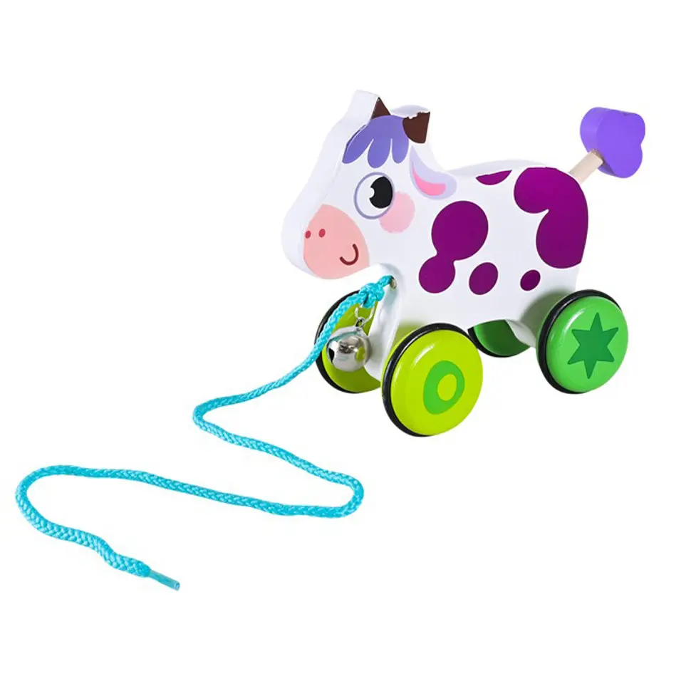 Представляем очаровательную деревянную игрушку-каталку на веревке (Арт. C15030) – идеального компаньона для малышей, которые только начинают ходить или уже уверенно шагают по миру. Эта яркая и прочная игрушка в виде милого животного превратит каждую прогулку или игру дома в увлекательное путешествие. Особенности и преимущества: Милый дизайн: Игрушка выполнена в виде одного из популярных животных (например, собачка, коровка, зайчик и т.д. – укажите конкретный вид животного, если известно), что привлекает внимание и стимулирует фантазию. Экологичный материал: изготовлена из натурального, тщательно отшлифованного дерева и окрашена безопасными, нетоксичными красками. Она приятна на ощупь и абсолютно безопасна для ребенка. Функция каталки: оснащена прочной веревкой для катания и колесиками, которые обеспечивают плавное движение. Развитие физических навыков: Ходьба: Поощряет малыша к активному движению и ходьбе, когда он тянет за собой своего «друга». Координация: Помогает развивать координацию движений и крупную моторику. Баланс: учит ребенка контролировать скорость и направление движения. Развитие мировоззрения: помогает малышу изучать названия животных, их звуки и особенности.