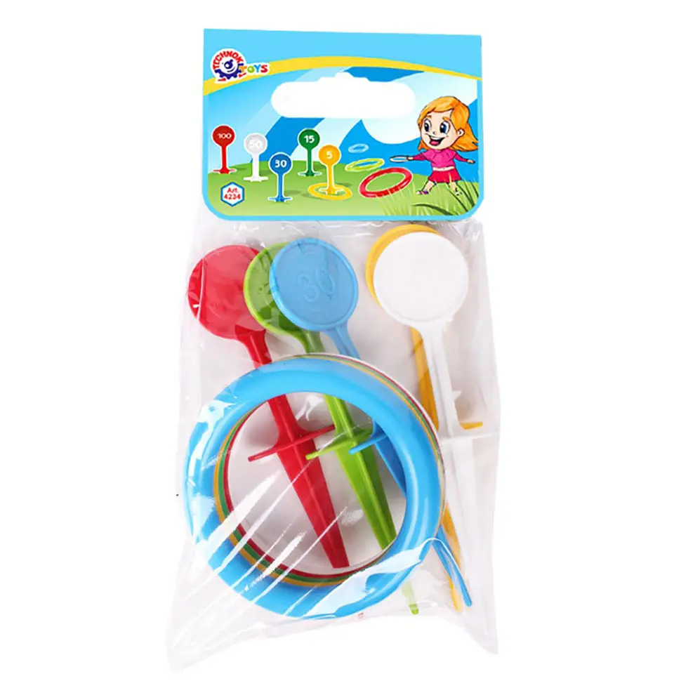 До конца акции 4 дняИгрушка "Кольцеброс" для активных игр на природе. Содействует развитию таких качеств ребенка, как меткость, точность расчета. Спортивный дух игрушки подчеркивает цветная гамма, которая напоминает кольца Олимпийских игр. В отличие от "классического" кольцеброса, в этом колья для попадания могут быть размещены в произвольном порядке, что также способствует развитию фантазии ребенка и увеличению вариантов увлекательной игры. В дополнение - кольцеброс легкий и компактный.