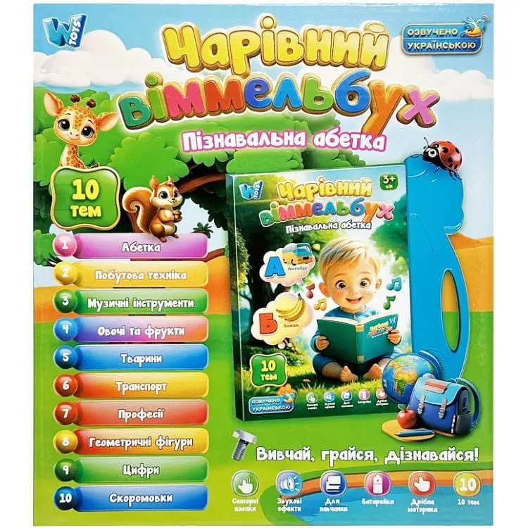 Электронная книга — это идеальный способ превратить обучение в увлекательную игру! Изучайте буквы, звуки, названия животных, транспорт и многое другое в интересном интерактивном формате, который сочетает текст, иллюстрации и звуковые эффекты. Эта электронная книга станет незаменимым помощником в развитии логики, памяти и речи вашего малыша.