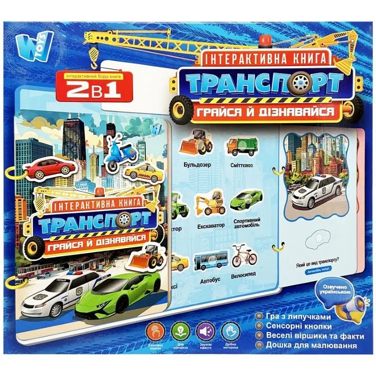 Интерактивная книга «Мир транспорта» — это уникальная игрушка, которая сочетает в себе обучение и развлечение. Благодаря ярким иллюстрациям, звуковым эффектам и познавательным фактам ребенок узнает больше о машинах, которые встречает каждый день!