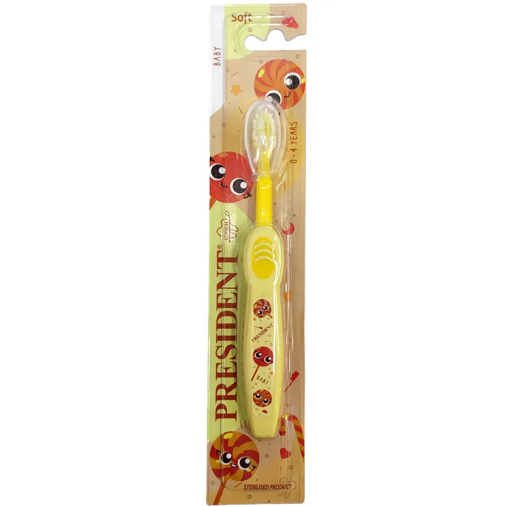 Детская зубная щетка President Baby имеет компактную головку, которая идеально подходит для зубной дуги младенца. Мягкая щетина с закругленными концами обеспечивает эффективное очищение и деликатный массаж десен, что важно для развития первых зубов у ребенка. Анатомическая ручка гарантирует безопасный захват для правильного использования зубной щетки.