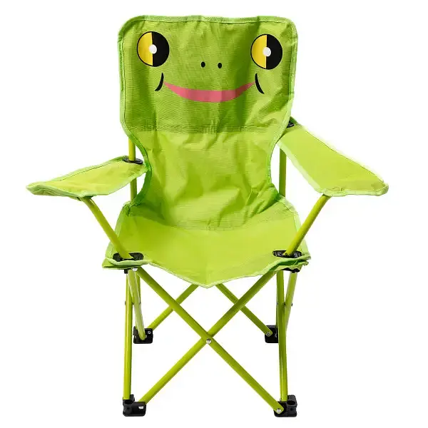 Детское складное кемпинговое кресло имеет металлический каркас, обеспечивающий прочность и стойкость конструкции. Благодаря сложному механизму, кресло легко разлагается и складывается, что делает его удобным для транспортировки и хранения.