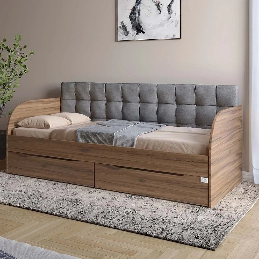 Кровать изготовлена из ЛДСП Swiss Krono - высококачественного материала, сочетающего эстетику с прочностью и надежностью. ЛДСП от Swiss Krono известен своей стойкостью к механическим повреждениям, влаге и высоким температурам, что гарантирует долговечность мебели и сохраняет ее эстетичный вид на долгие годы.
