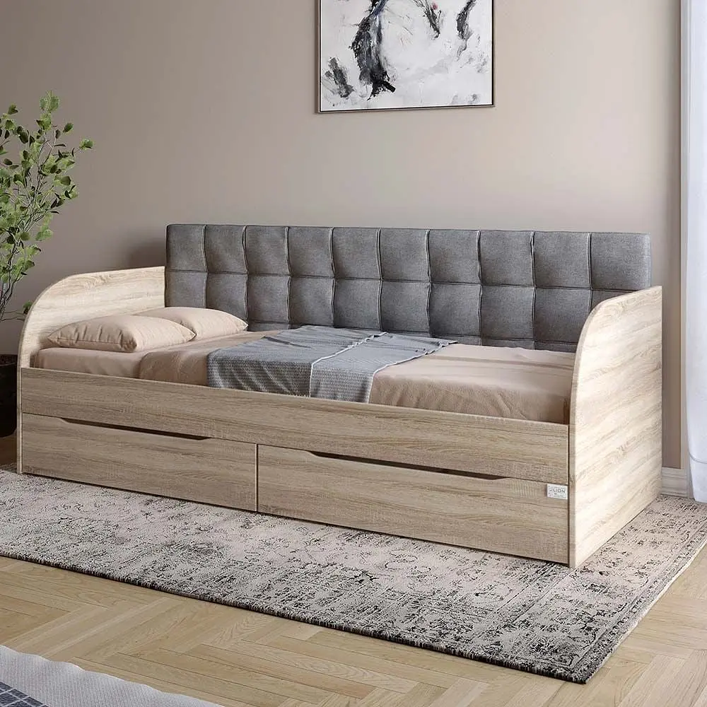 Кровать изготовлена из ЛДСП Swiss Krono - высококачественного материала, сочетающего эстетику с прочностью и надежностью. ЛДСП от Swiss Krono известен своей стойкостью к механическим повреждениям, влаге и высоким температурам, что гарантирует долговечность мебели и сохраняет ее эстетичный вид на долгие годы.