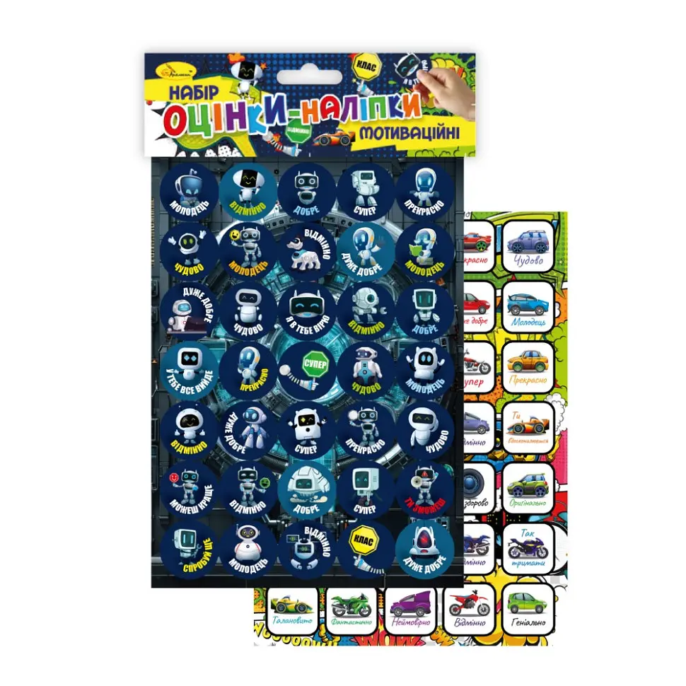 Мотивационные оценки-наклейки - именно то, что нужно для вербального оценивания в начальной школе, где оценки отсутствуют. Также они прекрасно подойдут для использования в детских садах. Эти яркие стикеры точно понравятся детям и замотивируют их к учебе. Оценки-наклейки содержат мотивирующие фразы, побуждающие к действию, уверенно идти к своим целям, позитивно мыслить, верить в себя и свои силы. С помощью оценок-наклеек учителя смогут реализовать методику поощрения маленьких учеников, в дневники которых будут вклеиваться симпатичные изображения с различными фразами по типу: - очень хорошо; - отлично; - гениально; - безупречно; - намного лучше; - попробуй еще; - я в тебя верю; - ты сможешь; - это успех; - хорошая работа и многие другие. Формат/размер: А5 Количество листов: 2 Упаковка и скрепление: упакованы в пакет полипропиленовый с цветной картонной бандеролью. Блок: бумага самоклеящаяся, мелованная бумага; фигурная подсечка.