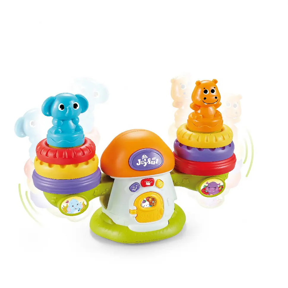 Замечательная игрушка для развития ребенка, выполненная в яркой расцветке и милом дизайне, который оценит каждый малыш. В комплект входят грибок-домик, фигурки животных и разноцветные кольца. На чаши весов нанизываются фигурки слоника и бегемотика и разноцветные кольца, чаши склоняются в ту или другую сторону в зависимости от количества надетых предметов, надо добиться равновесия весов. Если грибок включить, он проиграет мелодию, большая кнопка на шляпке грибочка подсветится. Если перекладину качелей качнуть, большая кнопка на шляпке грибочка подсветится, грибочек будет издавать разнообразные звуки. Регулятор громкости - кнопка включения и выключения. На лицевой стороне игрушки есть кнопки, которые позволяют задать несколько режимов работы: - проигрывает мелодии, кнопка на шляпке грибочка в этот момент подсвечивается. Повторное нажатие кнопки с изображение ноты - переключение мелодии (всего 6 мелодий); - режим исполнения барабанных партий, кнопка на шляпке грибочка в момент исполнения партий подсвечивается. Повторное нажатие кнопки с изображением барабана - переключение мелодии (всего 6 мелодий); - исполняет колыбельные, кнопка на шляпке грибочка в этот момент подсвечивается. Повторное нажатие кнопки с изображением подвески - переключение мелодии (всего 8 мелодий). Если не производить никаких манипуляций с игрушкой в течение 90 секунд, она выключится. Игрушка отлично развивает мелкую моторику рук, координацию движений, слуховое и зрительное восприятие, логическое мышление. Питание игрушки: 2 Батарейки типа АА (В комплект не входит) Размер упаковки: 22х11,4х30 см.