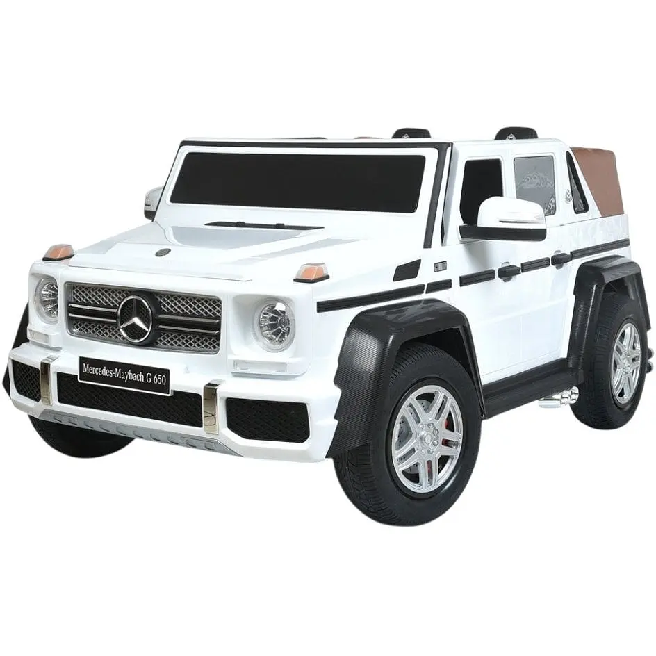 Бренд Mercedes-Maybach G650 Тип джип Размеры товара длина 180 см ширина по зеркалам/колесам 120/103 см высота 80 см вес 98 кг расстояние от сиденья до педалей 55 см/50 см/48 см, 3 положения. Допустимая нагрузка: вес до 100 кг, возраст от 6 лет. Мотор: количество/V/RPM 1*24V200W, бесщеточный. Батарея: количество/V/AH 24V14AH. Индикатор батареи - Зарядка V/mA 24V/1500mA Время зарядки 6-8 ч Индикатор зарядки + Старт Запуск с ключа Звук при запуске + Плавный старт в обычном режиме + Скорость км/ч 13-15 км/ч Количество скоростей на панели/на пульте 2 на панели Педаль газа + Педаль-тормоз + Свет Фары Передние/Задние Подсветка - Кнопка включения/выключения света + Звук Музыка MP3+USB Карта памяти USB Сигнал - BLUETOOTH + Управление Пульт управления - App(приложение) - Движение вперед/назад тумблер Сиденья количество мест 2 Ремни безопасности 2-точечные Материал экокожа Ширина сиденья 2*32 см Колеса Материал РЕЗИНА Размер передних колес/дисков 36 см/ 24 см Размер задних колес/дисков 36 см/ 24 см Простой монтаж - Корпус Материал пластик Крыша - Амортизаторы Передние + Задние + Дополнительные функции Двери открываются в стороны Демо-режим - Ручка - Доп. Колесики - Кондиционер - Коврик + Прицеп - Дополнительные элементы Регулировка сидений КОРОБКА Брутто/Размер 112,5 кг/178-106-65 см Количество слоев 7 Наличие цветного постера - Цвет картона коричневый