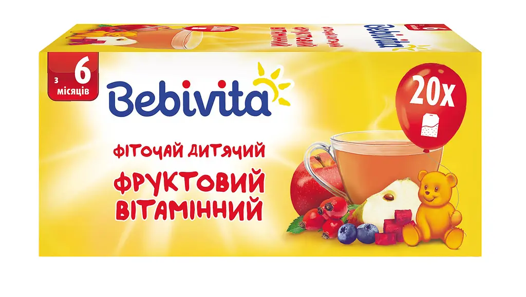 Детский фруктовый фиточай Bebivita - это на 100% натуральный напиток, состоящий из сладких фруктов.