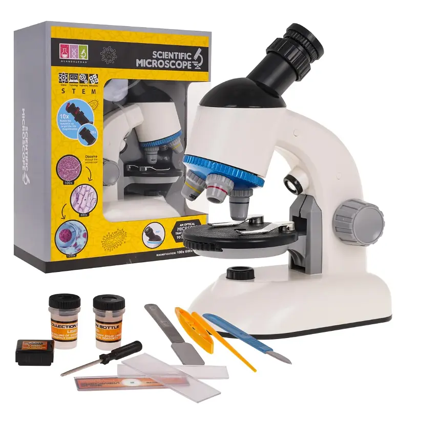Почувствуйте себя настоящим профессором в собственной домашней лаборатории! Эта модель микроскопа от Ramiz разработана для детей от 6 лет, которые стремятся узнать больше о строении окружающего мира. Главным преимуществом модели является окуляр, вращающийся на 360 градусов, позволяющий проводить исследования с любой стороны, не двигая сам прибор.