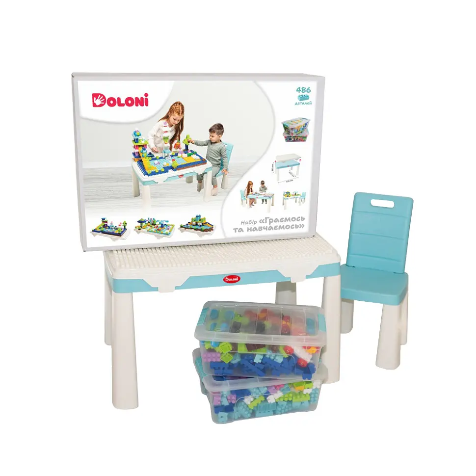 До конца акции 8 днейДетский стол и стул с накладкой для игры + 2 набора конструкторов. Doloni 04660/7 Комплект 04660/7 бирюзового цвета состоит из детского стола из пластика и одного детского стула. Стул можно использовать как табурет, поскольку в этой модели полностью снимается спинка. Вместо спинки можно установить заглушку, которая входит в комплект.