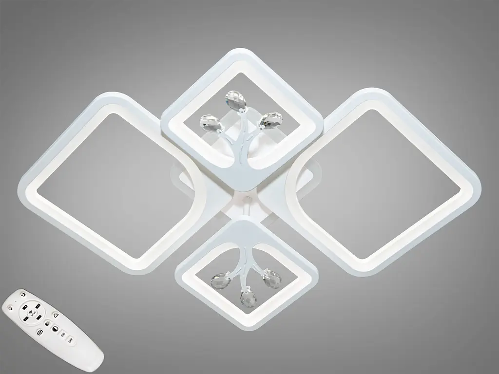 Новинка от "Диаша", пристеточная LED люстра, которая отличается современным дизайном с ярко выраженными геометрическими формами. Металлический каркас в форме четырех больших квадратов с округленными углами пересекается в центре, создавая динамичную композицию. Цвет каркаса варьируется и может быть выполнен в белом, черном, коричневом или сером цветах. При приобретении диодных люстр оптом от украинского производителя "Диаша", вы обеспечите не только освещение в комнате, но и придадите интерьеру особую изысканность. Известная своими инновациями в осветительном дизайне, "Диаша" является гарантом качества и долговечности. Каждый квадрат обрамляет светодиодный источник света, скрытый акриловыми рассеивателями, обеспечивающими мягкий и равномерный свет без резких теней или бликов, что делает люстру идеальной для детских комнат, а также помещений, где нужно создать спокойную атмосферу. Управление светом осуществляется с помощью пульта с электронным димером, который позволяет регулировать яркость и цветовую температуру света, от холодных до теплых тонов, а также включать режим «ночник», который идеально подходит для создания приглушенного света ночью. Люстра от "Диаша" также имеет LED подсветку металлической основы, которая может менять цвет, добавляя интерьеру дополнительное измерение. Энергоэффективность и долговечность светодиодов обеспечивают низкое энергопотребление и длительный срок службы, а малая высота от потолка делает эту люстру отличным вариантом для помещений с ограниченным пространством. Эта светодиодная люстра квадраты идеально подойдет для широкого спектра стилей интерьера, от минималистичных и современных до эклектичных и даже индустриальных пространств. Она станет центральным элементом в гостиных, спальнях, а также может использоваться на кухнях или в детских комнатах, где ее безопасность и мягкий свет станут неоспоримыми преимуществами. Люстра лофт в спальню будет воплощением роскоши, сочетающейся с простотой, или станет эпицентром люстры в гостиную, где каждый вечер можно проводить под уютным светом. Она реализует инновации на украинском рынке, демонстрируя, что «Диаша» не только следует традициям высокого качества материалов, но и является новатором в сфере осветительного дизайна.