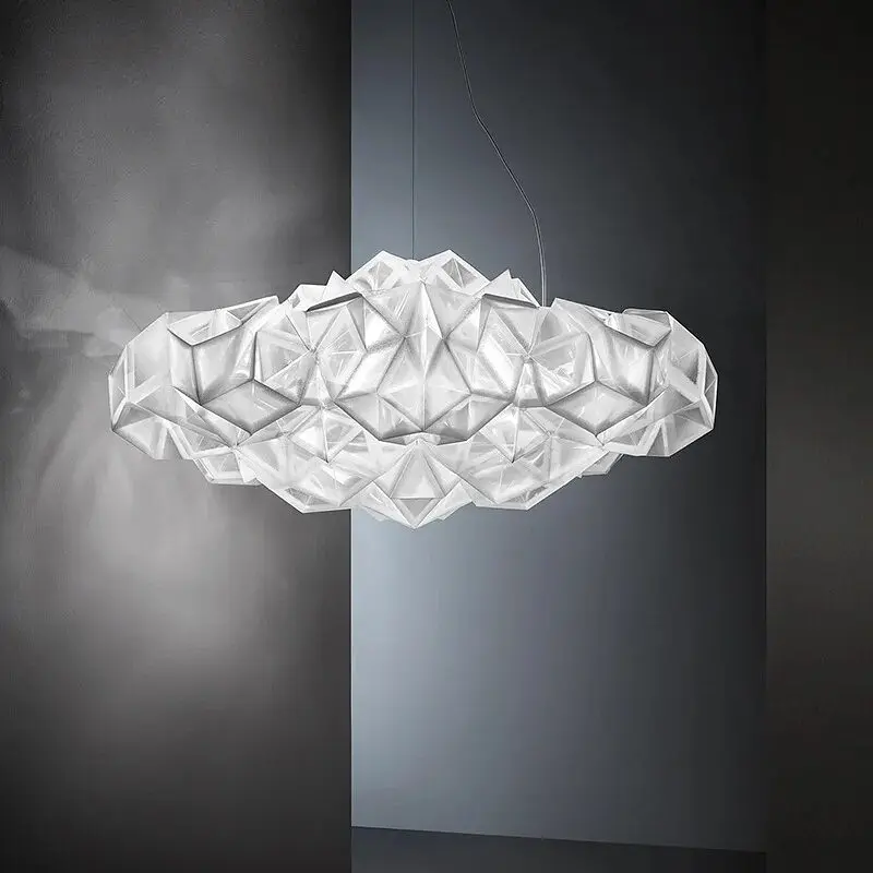 Drusa - это люстра вдохновленная горой бриллиантов. Благодаря бесконечным хроматическим оттенкам она приносит свежее, модное ощущение в любое пространство. Эта люстра создает гармонию между светом и формами. Корпус изготовлен из качественного пластика белого или золотого цвета. На корпусе встроены светодиоды с нейтральным светом. Ширина (см): 60 Цвет основы: Белый Размер коробки: 66х66х33 см Вес (кг): 3.4 Размер потолочной основы: 12х2 см Цветовая температура: 4000K Максимальная высота: 170 см Минимальная высота: 30 см Тип цоколя: LED-модуль Материал основы: Пластик Размер монтажной планки: 12 см Тип крепления: Монтажная планка Мощность (Вт): 16 w