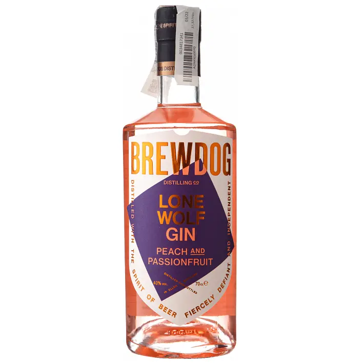 Джин BrewDog (БрюДог) LoneWolf Peach&Passionfruit Gin созданный на основе классического джина LoneWolf Gin с добавлением спелого персика, маракуйи и юдзу.