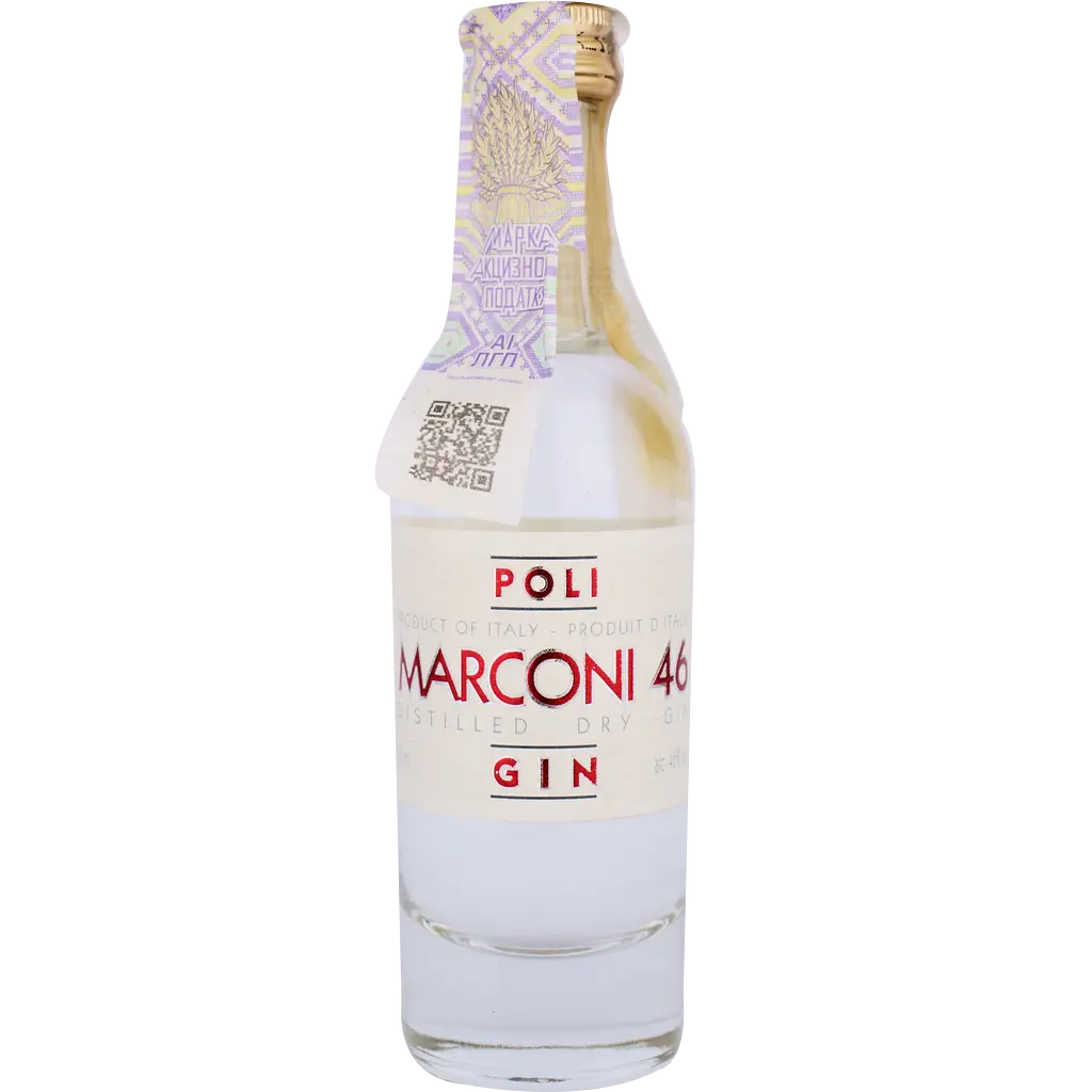 Джин Poli Distillerie (Поли Дистилейр) Gin Marconi 46 Distilled - итальянский крафтовый джин прозрачного цвета изготовлен в ручную небольшими партиями из настоя ягод можжевельника, мускатного винограда, сосны, мяты, кардамона и кориандра покорит Вас своим необычным вкусом и ароматом.