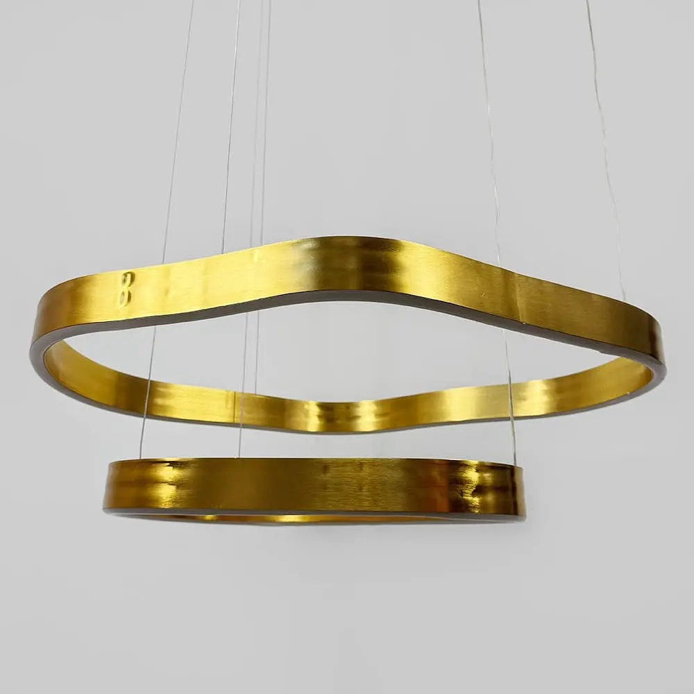 Необычная и эффектная, эта подвесная люстра поражает своим современным дизайном и гармонично сочетает в себе инновации и эстетику. Ее органичные, плавные формы как будто вдохновлены природой - волнообразные линии каждого кольца создают мягкий, воздушный силуэт. В сочетании с элегантным металлическим корпусом люстра становится настоящим арт-объектом в любом пространстве. Люстра представлена в 2-х цветах корпуса (золотой и черный) и в 3-х конфигурациях: 2 яруса: 65х55 см и 45х30 см, мощность 54 Вт (26 Вт теплый/холодный свет + 4 Вт ночник) 3 яруса: 80 + 64 + 43 см, мощность 76 Вт (38 Вт теплый/холодный свет + 8 Вт ночник) 5 ярусов: 120 + 100 + 80 + 60 + 40 см В нижней части каждого кольца встроена LED-подсветка с силиконовым рассеивателем. Доступны три режима света - теплый, холодный и нейтральный - а также режим ночника. Крепление на тросах позволяет регулировать высоту каждого элемента отдельно, создавая собственную уникальную световую композицию. Эта модель идеально подходит для просторных гостиных, столовых, холлов, бутиков или публичных зон, где нужен выразительный световой акцент и ощущение пространства. Тип цоколя: 55 Тип помещения: Люстры для гостиной (в зал) Режим ночника: Есть Форма изделия: Асимметричная Серия: PCL006 Цвет основания: Золотой Материал плафона: Силикон Размер потолочного основания: 25х4х5 см Цветовая температура: 3000–4500–6000К Максимальная высота: 180 см Минимальная высота: 15 см Материал основания: Металл Размер монтажной планки: 22 см Тип крепления: Монтажная планка Мощность (Вт): 54