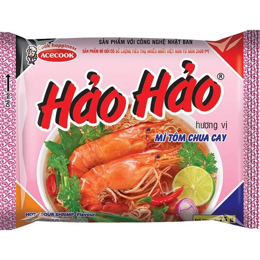 Локшина Acecook Hao Hao зі смаком гостро-кислої креветки швидко готується й має насичений пікантний смак. Бульйон ароматний, з легкою кислинкою і морським присмаком. Порція зручна для швидкого перекусу або обіду. Можна додати овочі чи яйце для більшої ситності.