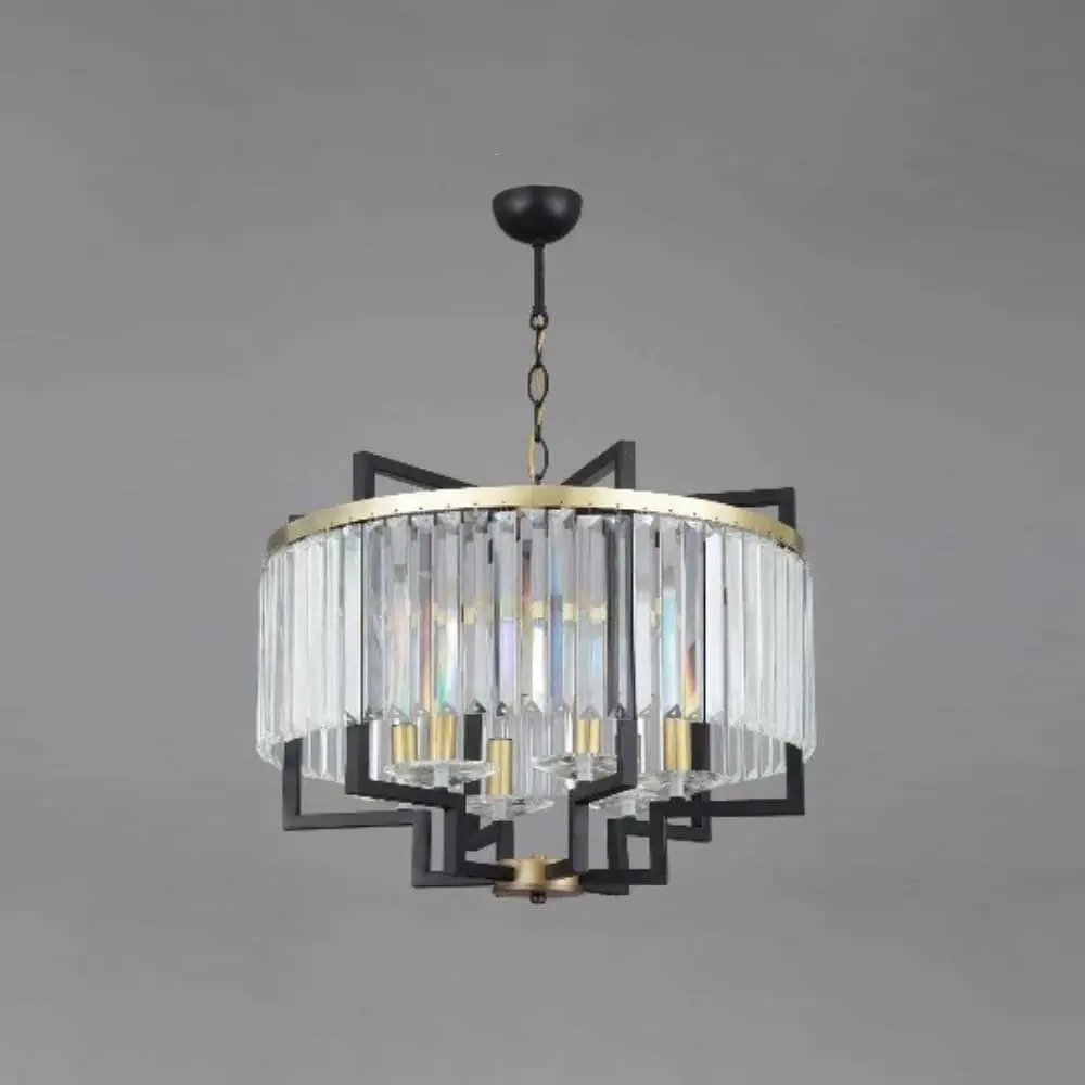 Элегантная люстра в стиле современной классики станет роскошным акцентом любого интерьера. Ее изысканный металлический корпус в сочетании золота и черного невероятно сочетается с удлиненным дизайном подвесов из прозрачного стекла (длина каждого 19,5 см), которые создают мягкую мерцающую игру света. Конструкция состоит из нескольких металлических золотых ярусов, что придает люстре объемность и глубину. Такой дизайн обеспечивает равномерное освещение и создает атмосферу элегантной роскоши. Эта модель представлена в двух размерах: Ø 50х50 см - цоколь E14 на 4 лампы Ø 70х50 см - цоколь E14 на 6 ламп Общая высота люстры регулируется до 130 см, что позволяет адаптировать люстру под любые потолочные решения. Идеально подойдет для просторных гостиных, обеденных зон, холлов, ресторанов и отелей, придавая им величие, мягкость освещения и изящный стиль. Цветовая температура: 50 Форма_изделия: Круг Тип помещения: Люстры для гостиной (в зал) Серия: MJ348 Цвет основы: Черный+золото Размер потолочной основы: 7х12 см Максимальная высота: 130 см Минимальная высота: 60 см Тип цоколя: E14 Материал основы: Металл Цвет хрусталя: Прозрачный Размер монтажной планки: 11,5 см Тип крепления: Крестовина Количество источников света: 6