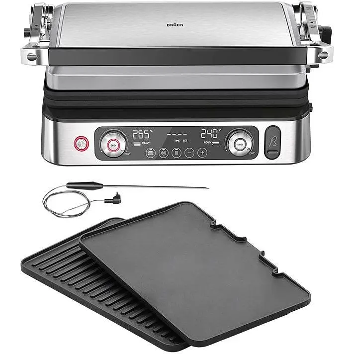 Необычайная точность и отличная универсальность у вас под рукой. Два независимых электронных термостата позволяют точно регулировать температуру каждой пластины по отдельности, чтобы вы могли одновременно готовить два вида пищи при двух разных температурах.