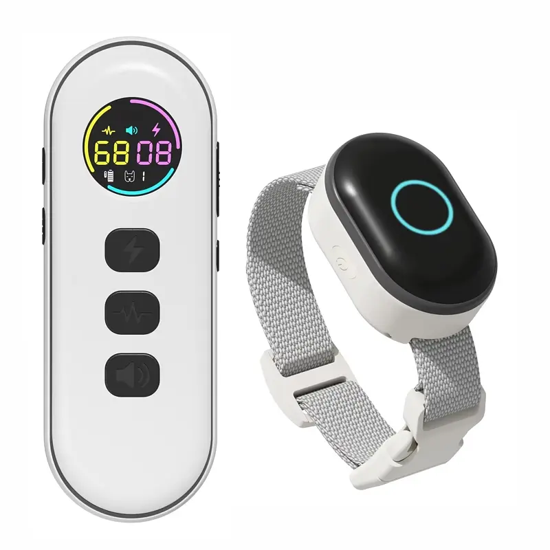 На дистанционном пульте расположены кнопки включения, выбора одного из трех видов воздействия - электрошок, вибрация или звук - и настройки их уровня интенсивности от 0 до 99. К пульту можно привязать в случае необходимости 3 ошейника и переключаться между ними.