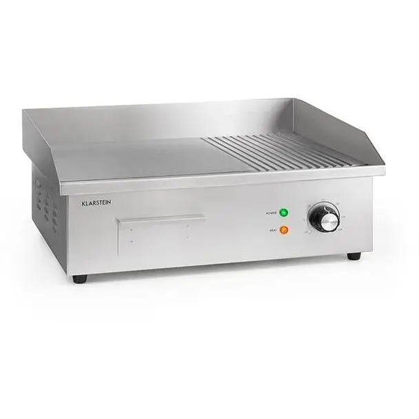 С электрическим грилем Klarstein Grillmeile 3000GR у маленького голода нет шансов. Благодаря мощности 3000 Вт, он подрумянивает и готовит стейки, сосиски или целые блюда, жареные на сковороде, без остановки. Что особенно практично, так это его бесступенчатая регулировка температуры от 50 до 300 °C, поэтому он действительно жаркий, когда многие клиенты нужно быстро получить блюда на гриле, и его можно настроить, чтобы поддерживать тепло энергосберегающим способом, когда толпа уменьшается. немного вверх. Большая чугунная пластина для гриля размером 54,5х35 см с двумя частями идеально подходит для разнообразных блюд, приготовленных на гриле. Треть поверхности снабжена ребрами гриля, остальные две трети полностью гладкие. Вы можете жарить на гриле и переворачивать прямо на тарелке, нигде ничего не прилипает. Универсальная защита от брызг обеспечивает безопасность клиентов и обеспечивает практическое сопротивление при поворотах. Избыток масла стекает в съемный поддон для сбора капель и его можно легко утилизировать в конце приготовления барбекю.