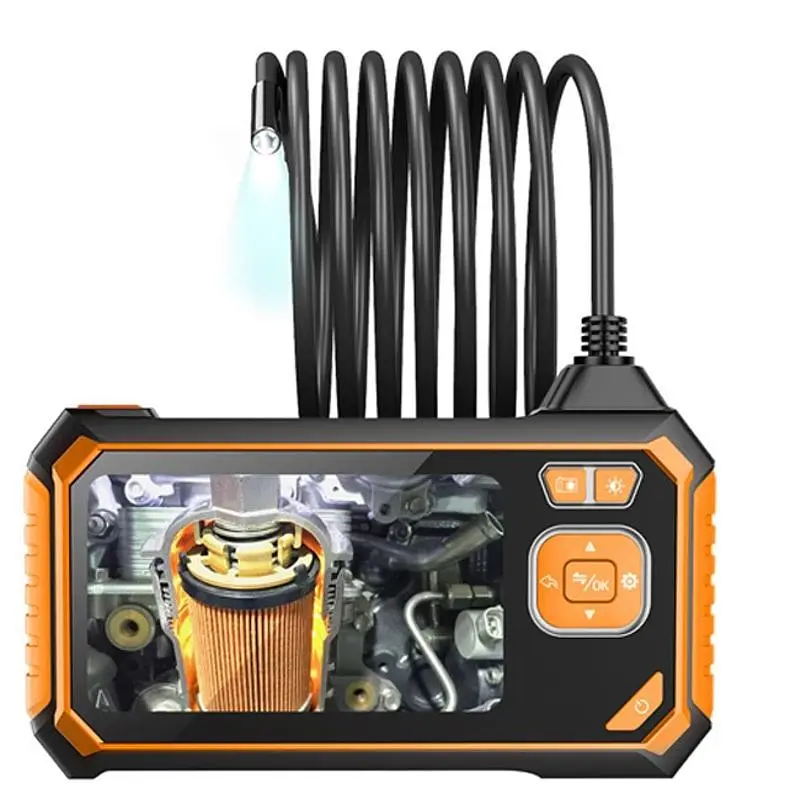 Данный эндоскоп для авто выполнен в виде экрана неизменным полужестким кабелем с камерой на конце длиной 1, 5 или 10 метров (в зависимости от модификации). Его удобно переносить и хранить. Камера имеет разрешение 2 мегапикселя и диаметр 8 мм, его можно поместить в любое отверстие или канал, например при осмотре автомобильного двигателя. Она имеет защиту IP67, не боится погружений в воду и другие жидкости. Цветное изображение в процессе выводится на 4,3” дисплей.