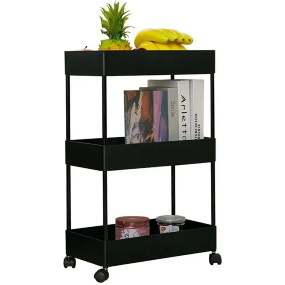 Функциональная пластиковая этажерка на колесах, состоящая из трех ярусов, станет идеальным решением для хранения вещей в ванной комнате, кухне, офисе или гардеробе.