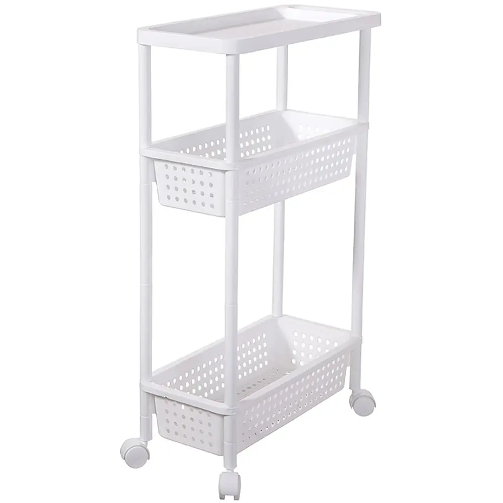 Этажерка трехярусная MVM идеально подходит для хранения банок, тюбиков, бутылок и моющих средств.